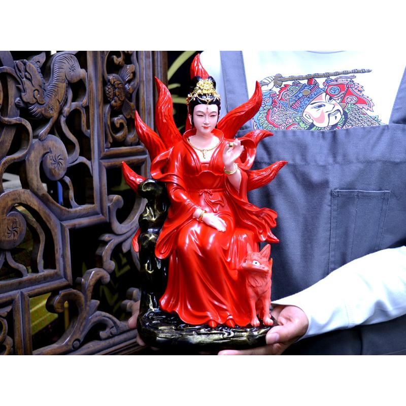 【中国伝統樹脂工芸狐仙娘娘(九尾の狐)】綺麗に彩色された狐仙娘娘(九尾の狐)像です狐娘娘(九尾の狐)は中国の神話に登場す