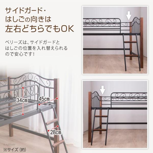 ロフトベッド ロフトベット 大人用 子供用ロフトベッド おしゃれ 可愛い 黒 姫系 姫ベッド アンティーク ベリーズ ロータイプ フレームのみ シングル