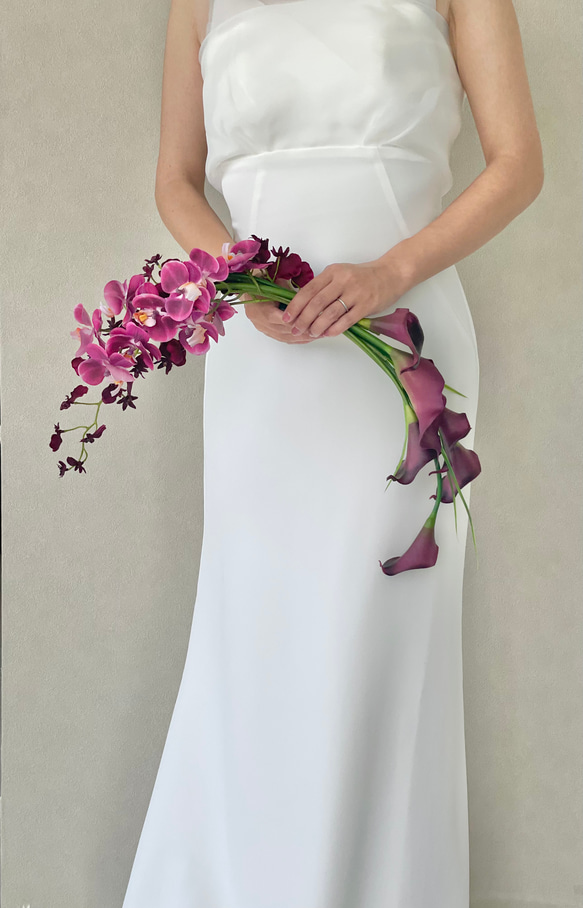 大人っぽいワイン色のカラーとオンシジュームに小ぶりなピンク胡蝶蘭の可愛