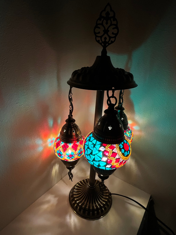置き型シャンデリア。Sサイズ(直径12cm)のランプシェードが3つ付いたすっきりとしたスタイル