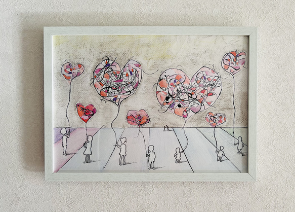 Future Heart子供たちが未来に繋がるハートの風船を持っています明日が見えない曇り空
